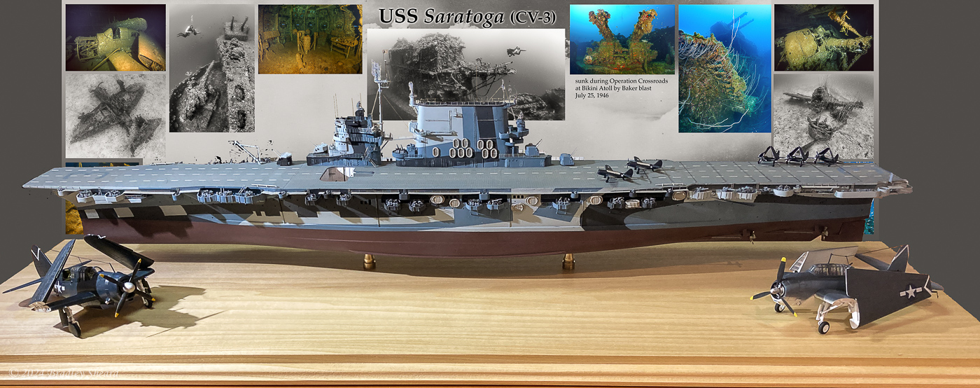 At the close of the Second World War, the United States military had in its hands an incredibly powerful new weapon. At that time only three of the new atomic bombs had ever been detonated, and it was perhaps only natural that military leaders wanted to know just what this weapon was capable of. With the aim of determining the bomb's capabilities, and perhaps demonstrating that capability to the world, the US military conducted a series of tests at Bikini Atoll in the Marshall Islands in 1946, code-named "Operation Crossroads." On July 1, 1946, an atomic bomb was airdropped over a fleet of 88 target vessels anchored in the lagoon at Bikini-the airdrop was code-named ABLE. The fleet was made up of American, Japanese and German vessels, and included aircraft carriers, battleships, cruisers, destroyers, submarines and transports. A second detonation, code-named BAKER, was conducted on July 25 on the remaining ships with the bomb suspended 90-feet below the lagoon's surface. In all, 21 ships were sunk in the lagoon during the two tests. | |
