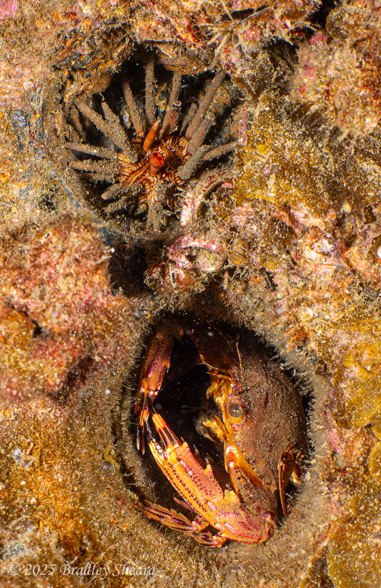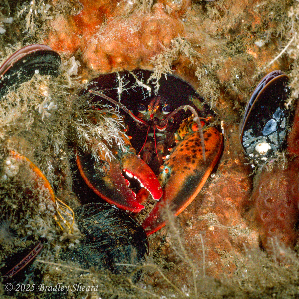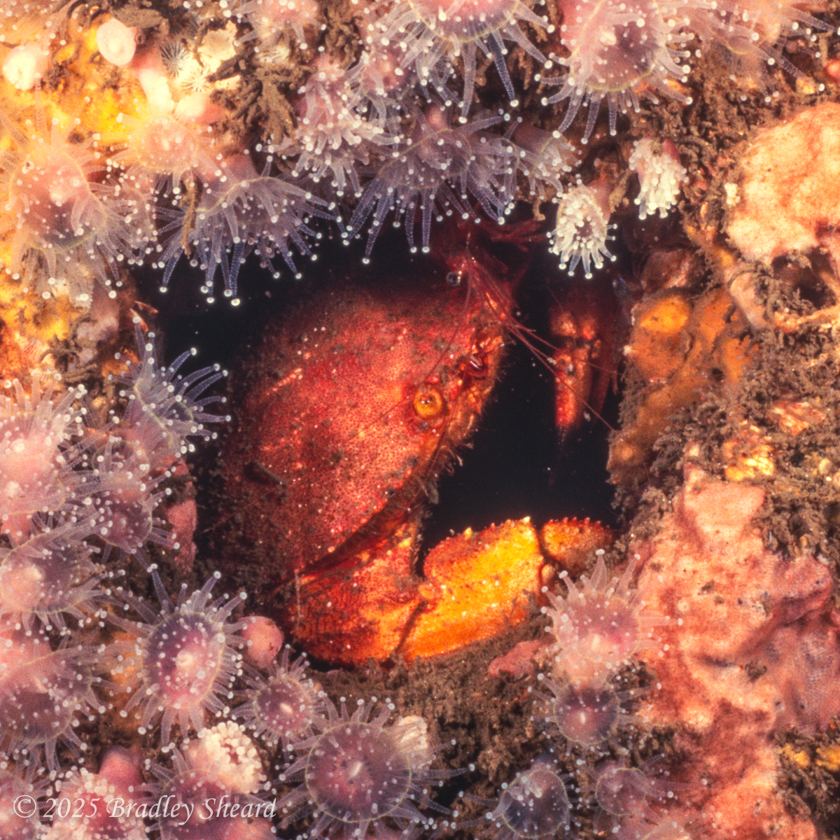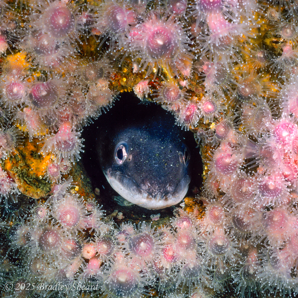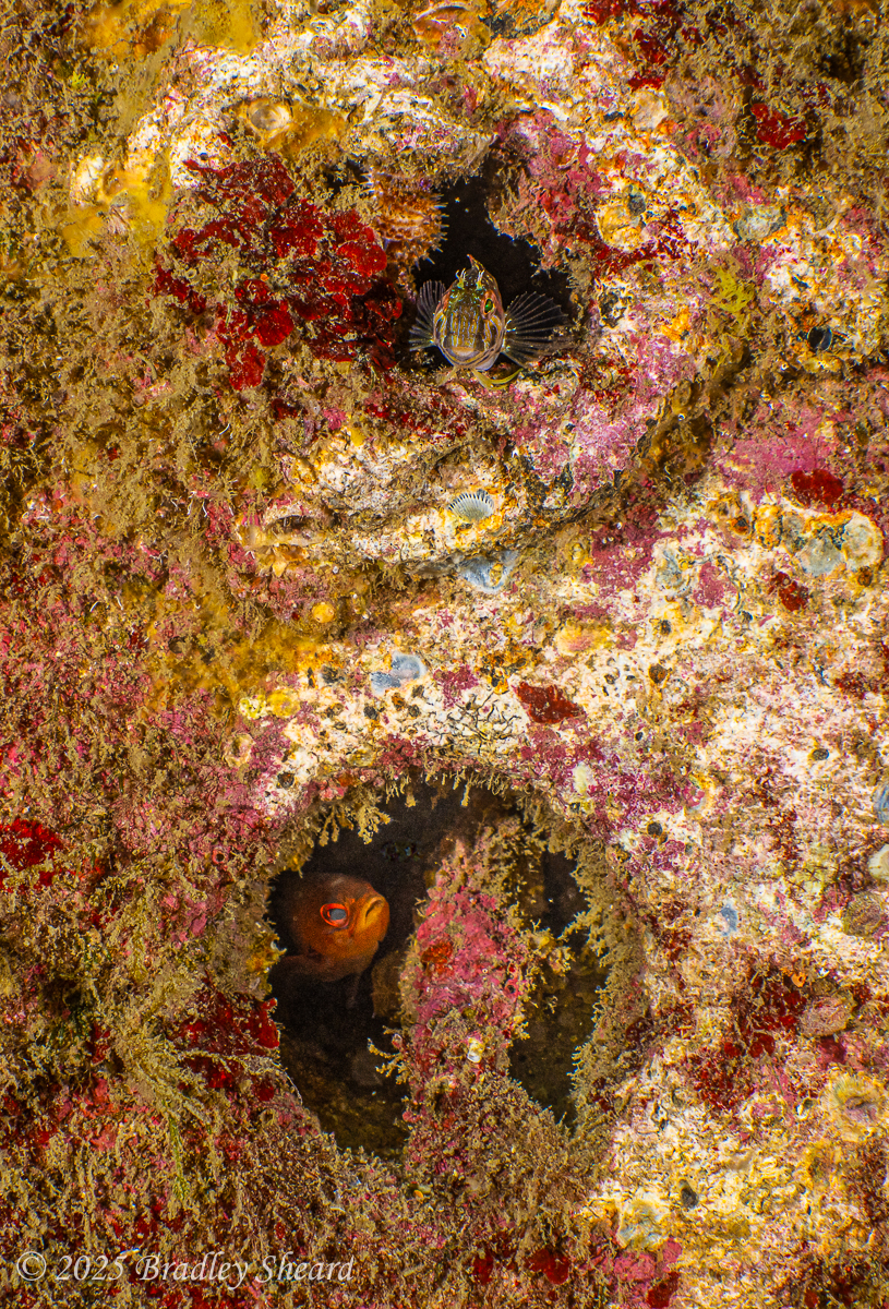 | eel and soft coral, Mexicano (September 1994, film) | tiny oyster toadfish, FW Abrams (June 2022, digital) | blennie, FW Abrams (June 2022, digital) | crab, Mexicano (September 1994, film) |